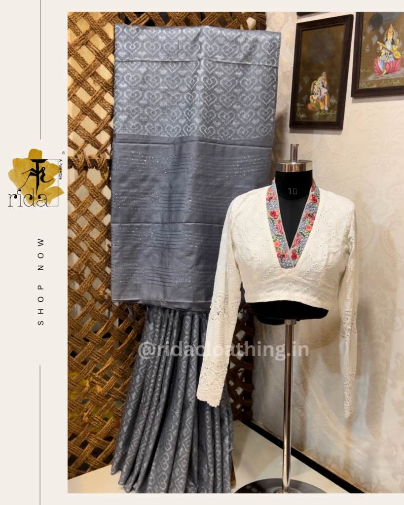 SAREE- Cotton silk fabric is a blend of cotton and silk fibres, adding an extra layer of luster to a regular cotton saree. A lightweight silky and comfortable weave, it has a soft hand-feel and a sturdy, silken drape.