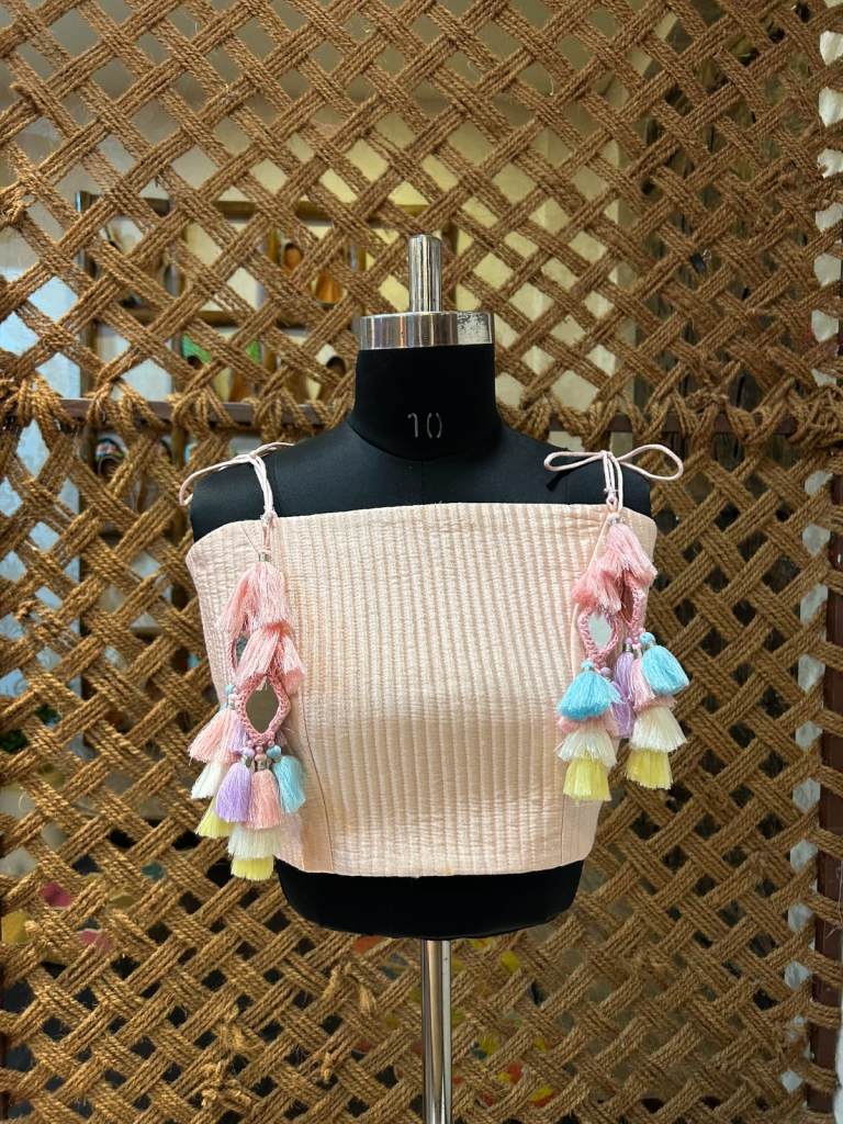 It adorned with beautiful thread tassels and kaudi shells which creates a perfect blend of traditional craftsmanship and modern fashion.