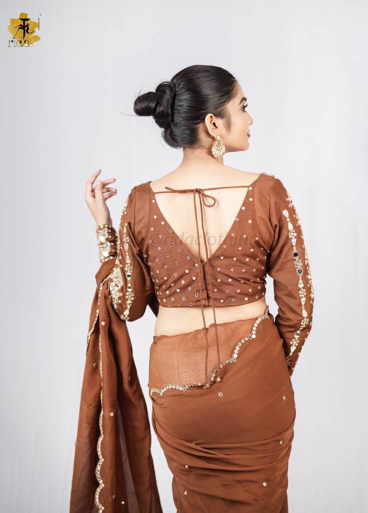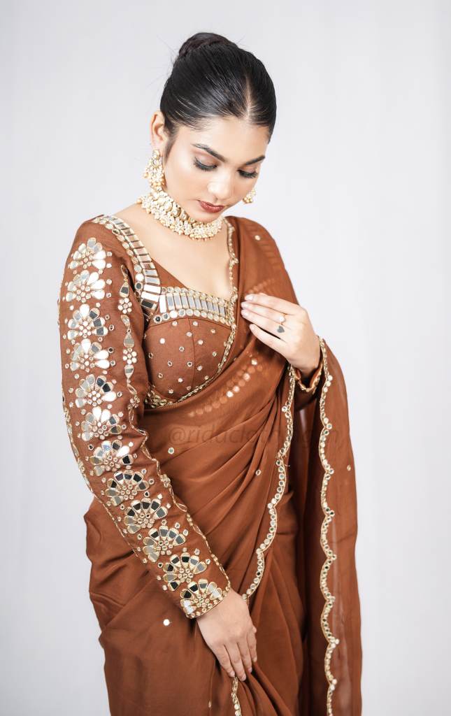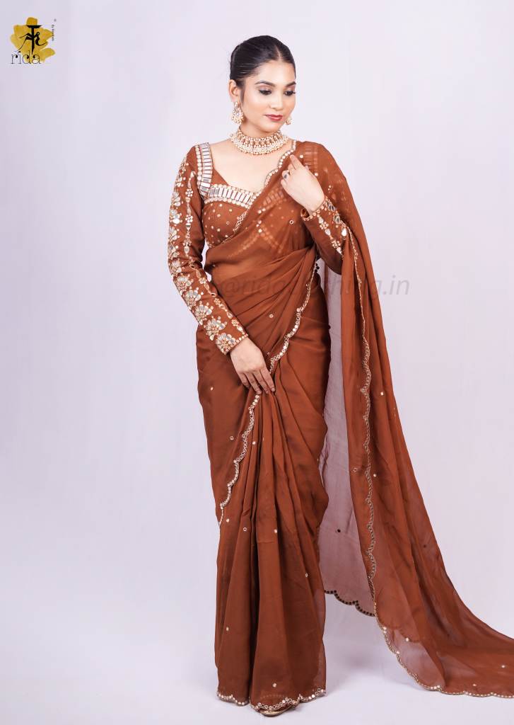 SAREE - A stunning saree that dazzles with every movement — featuring intricate mirror cutwork along the edges, giving it a festive shimmer and an elegant finish. The mirror detailing adds a contemporary twist to its traditional charm, making it a perfect pick for celebrations.