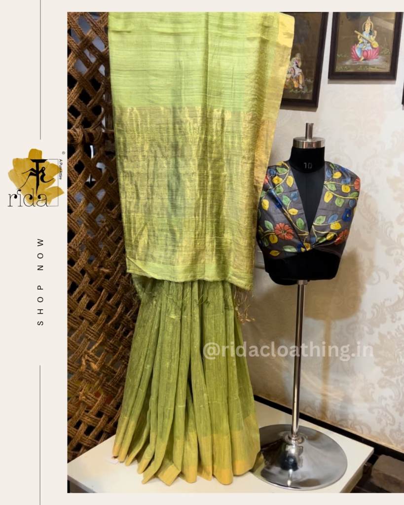Blend of Green Muslin & Matka silk saree with Tussar silk blouse